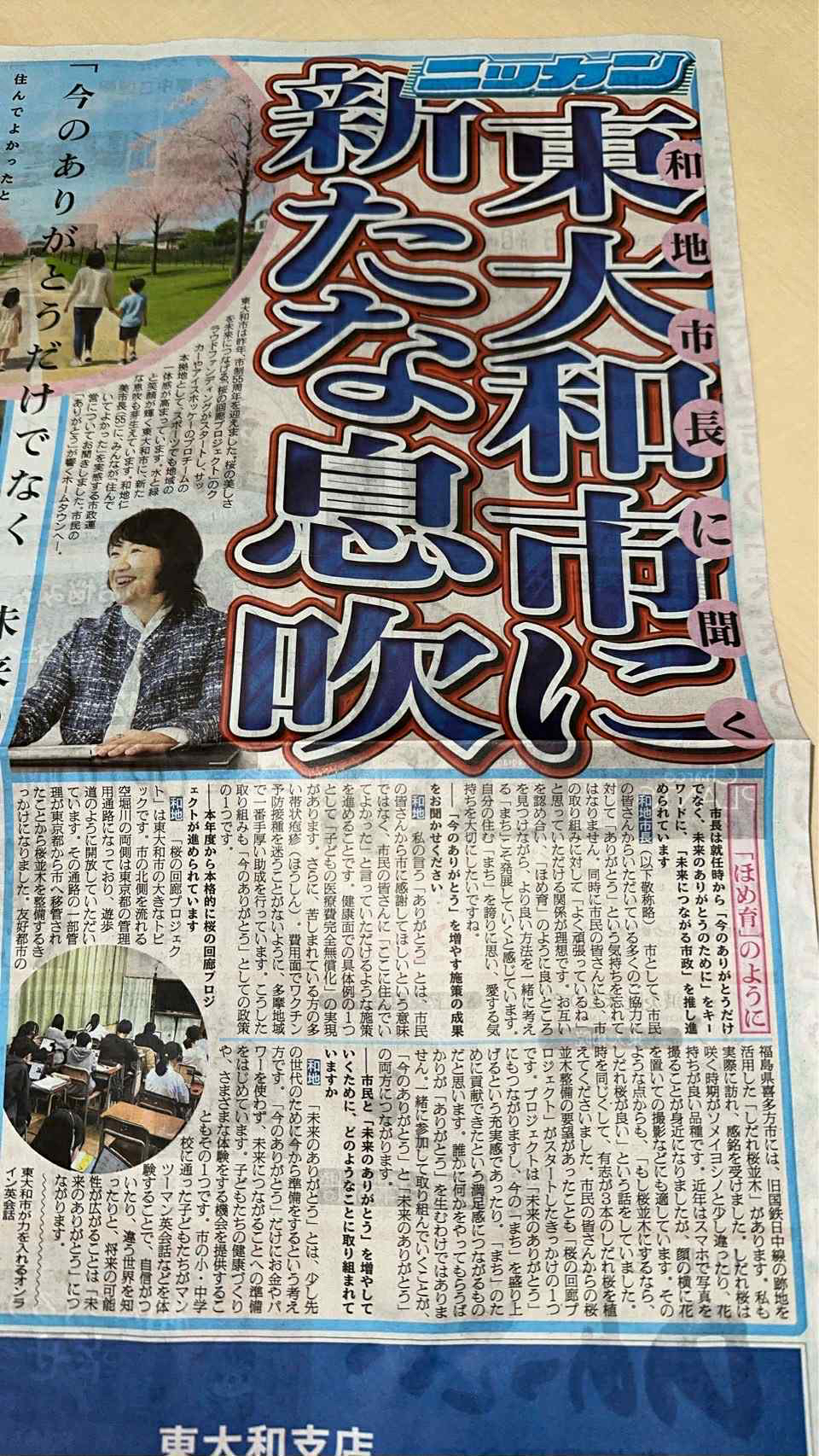 2026年1月1日付の日刊スポーツに掲載された「東大和市に新たな息吹」の記事の中で、「ほめ育」が紹介されました。